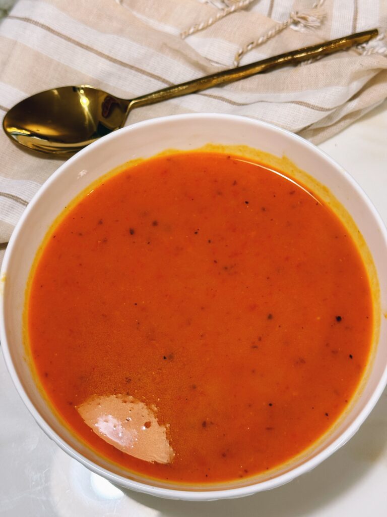 Did you know that a cup of red peppers has almost 3x more vitamin C than an orange?! This soup…