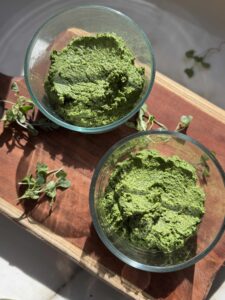 When broccoli is cool, add avocado, lime juice, cumin, coriander, salt and cayenne, using the fork to mash it into a consistency you like. Add in the scallion (or red onions) and oregano, mixing to combine.